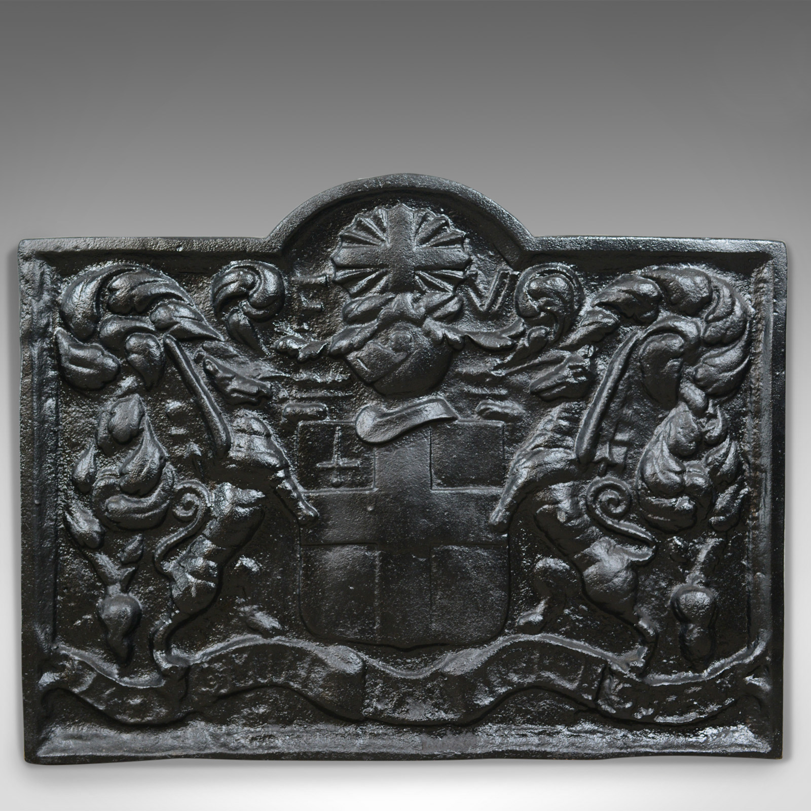 Cast Iron Fire Back, Early 20th Century, Coat of Arms, English, Heavy