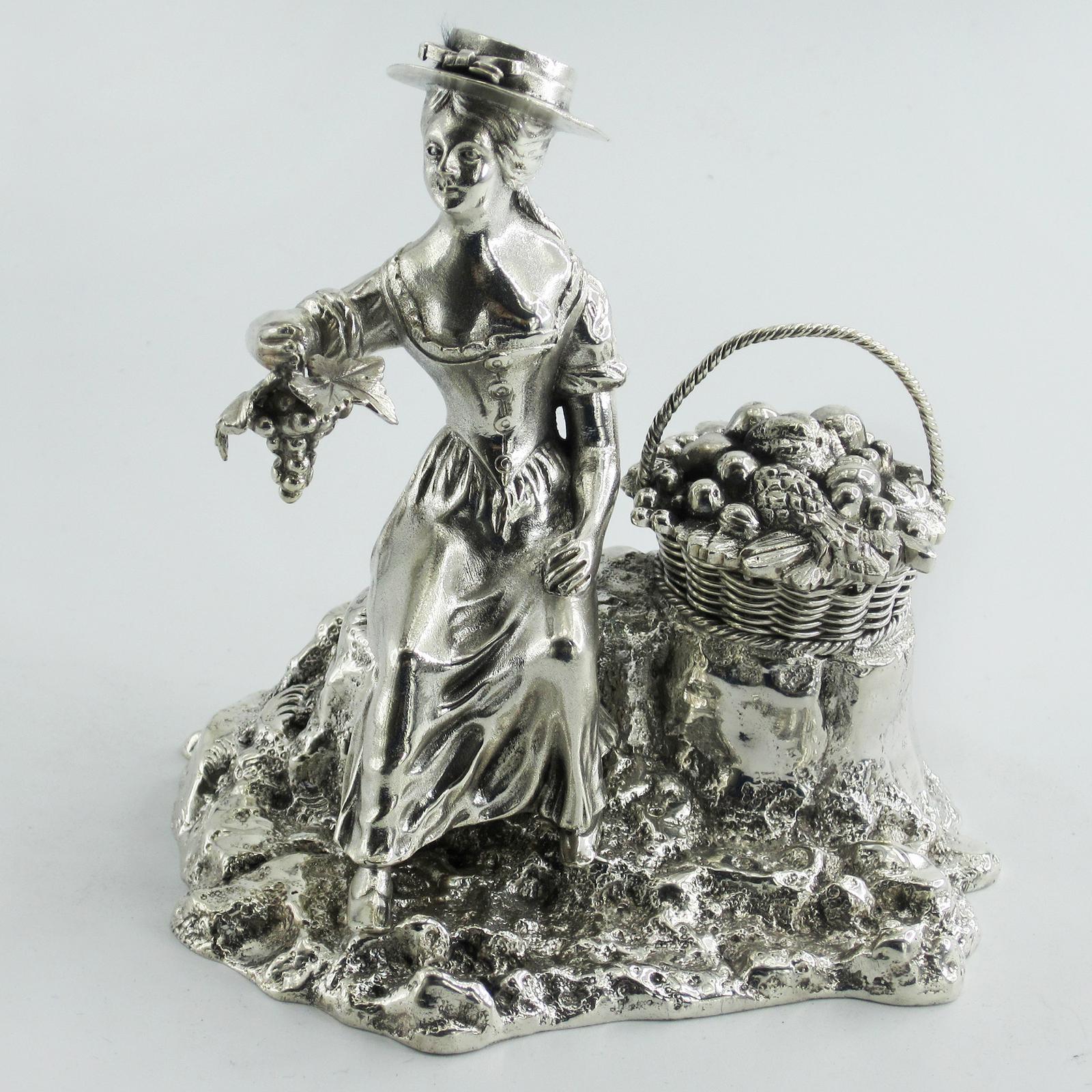 Cast Victorian Silver Plated Ink Stand Shaped as a Female Fruit Seller (1 of 8)