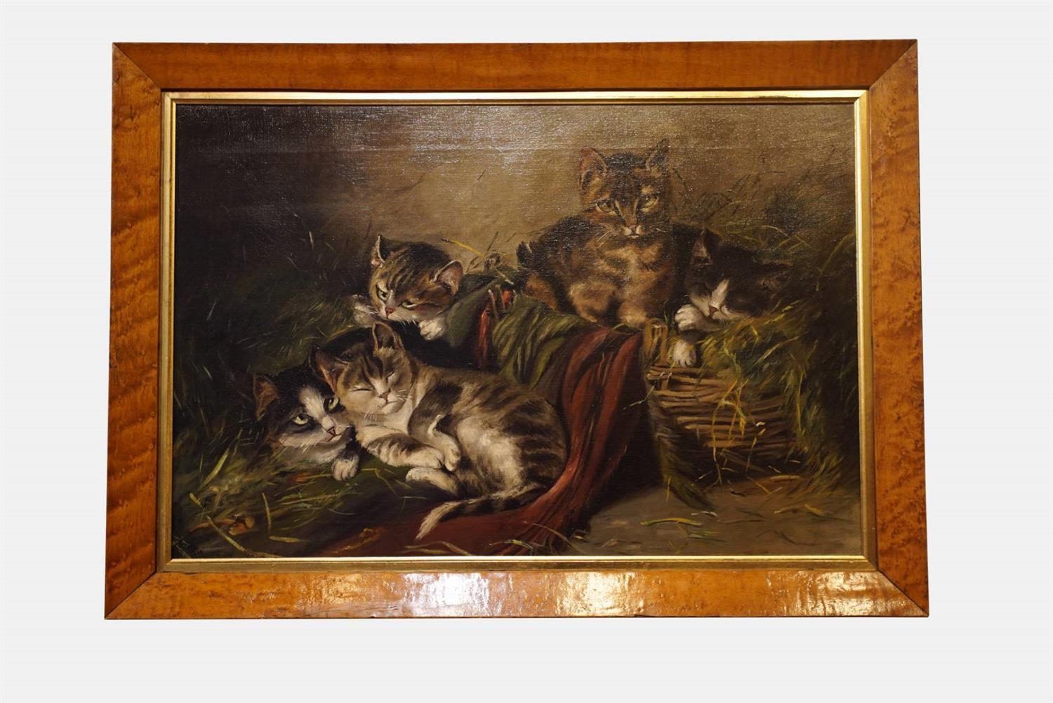 Cat & Kittens - Oil on Canvas c.1900 (1 of 6)