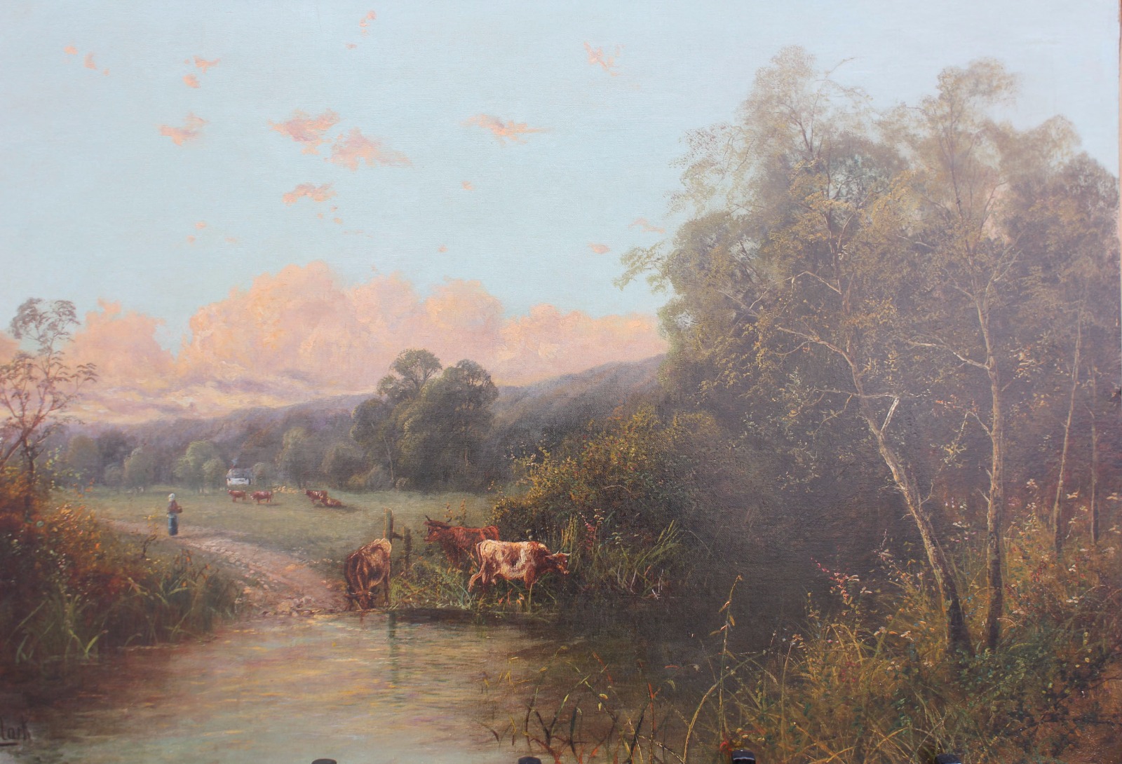 Cattle Crossing a River / Signed: Octavius T. Clark