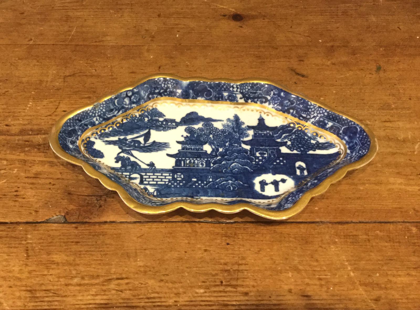 Caughley Blue Printed Spoon Tray with Gilt Linings