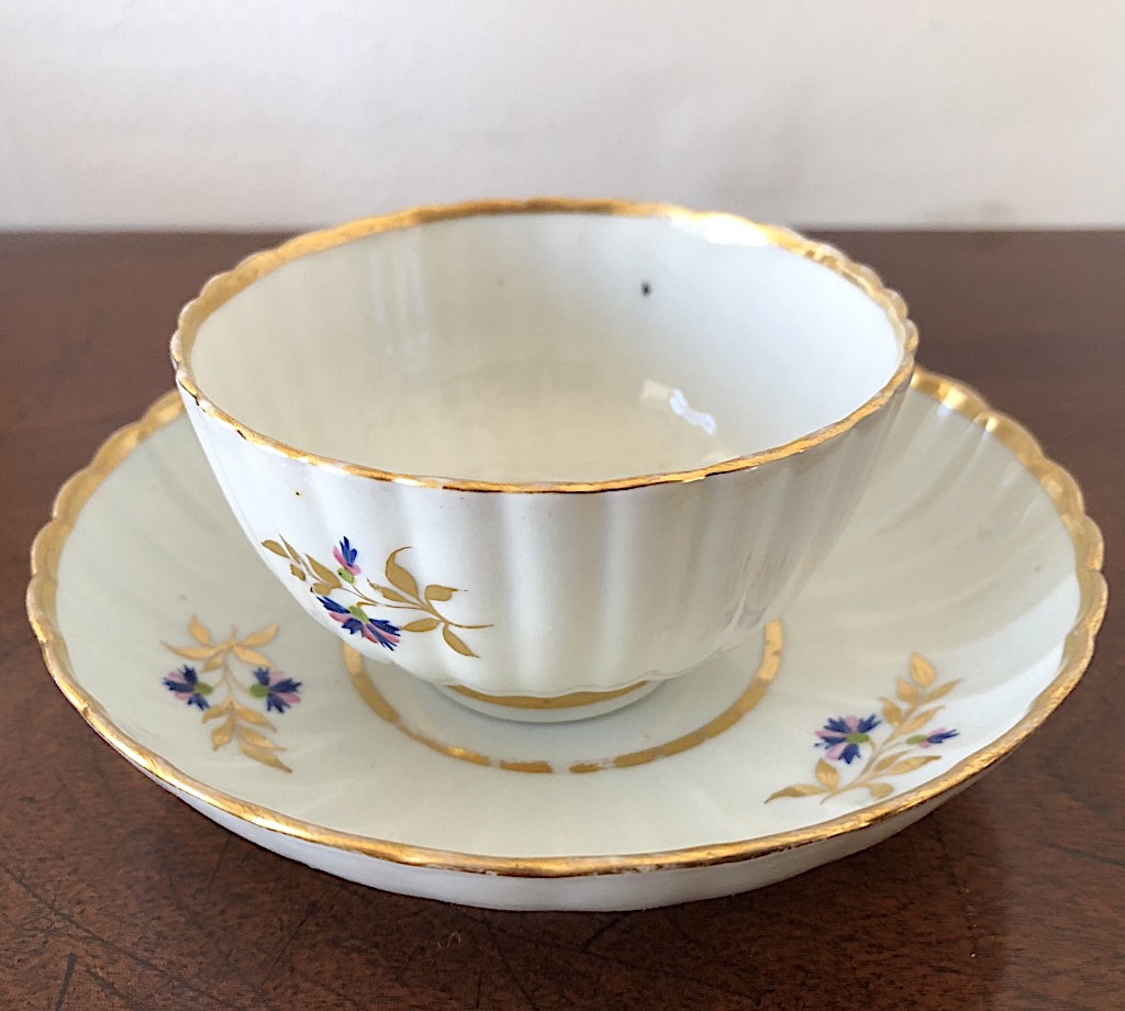 Caughley Fluted Cornflower Tea Bowl & Saucer C.1790