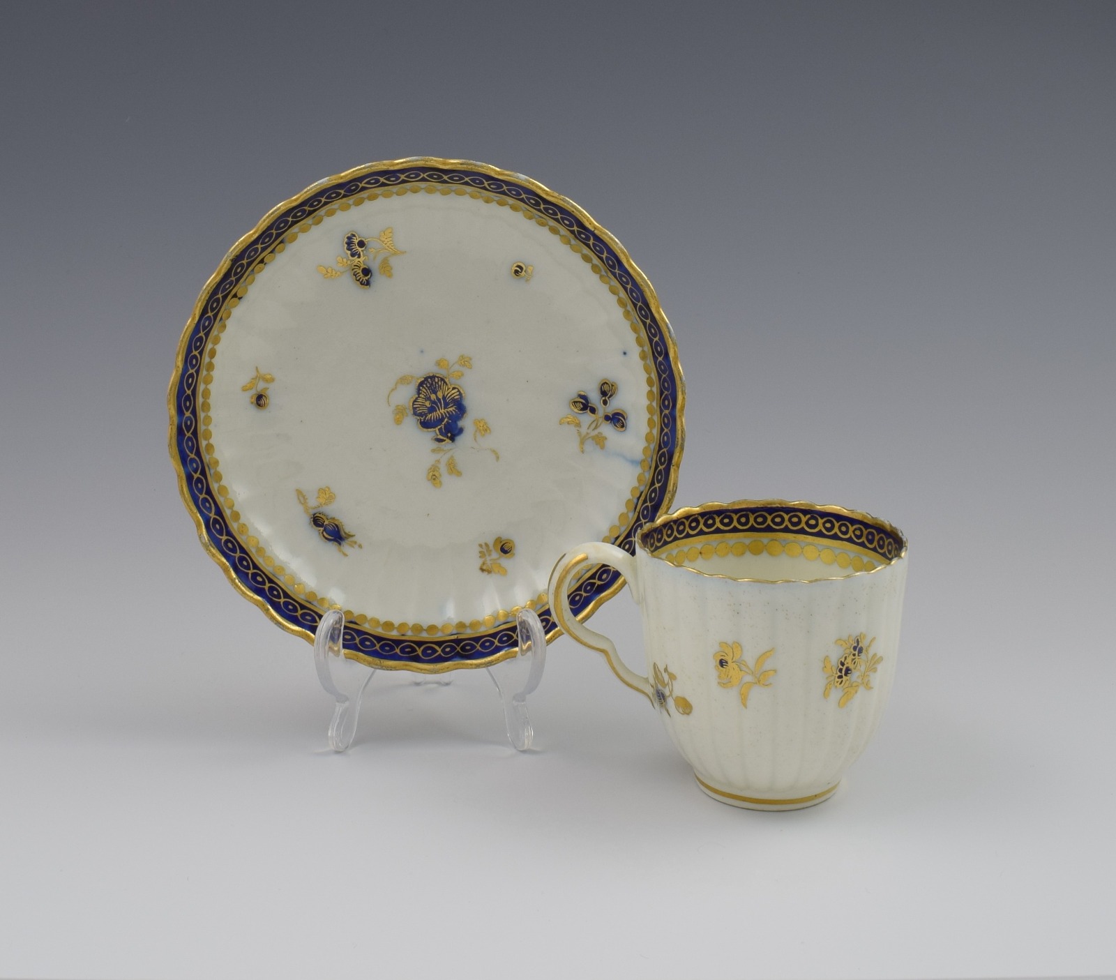 Caughley Porcelain Fluted Coffee Cup & Saucer Dresden Flowers C.1785 (1 of 1)