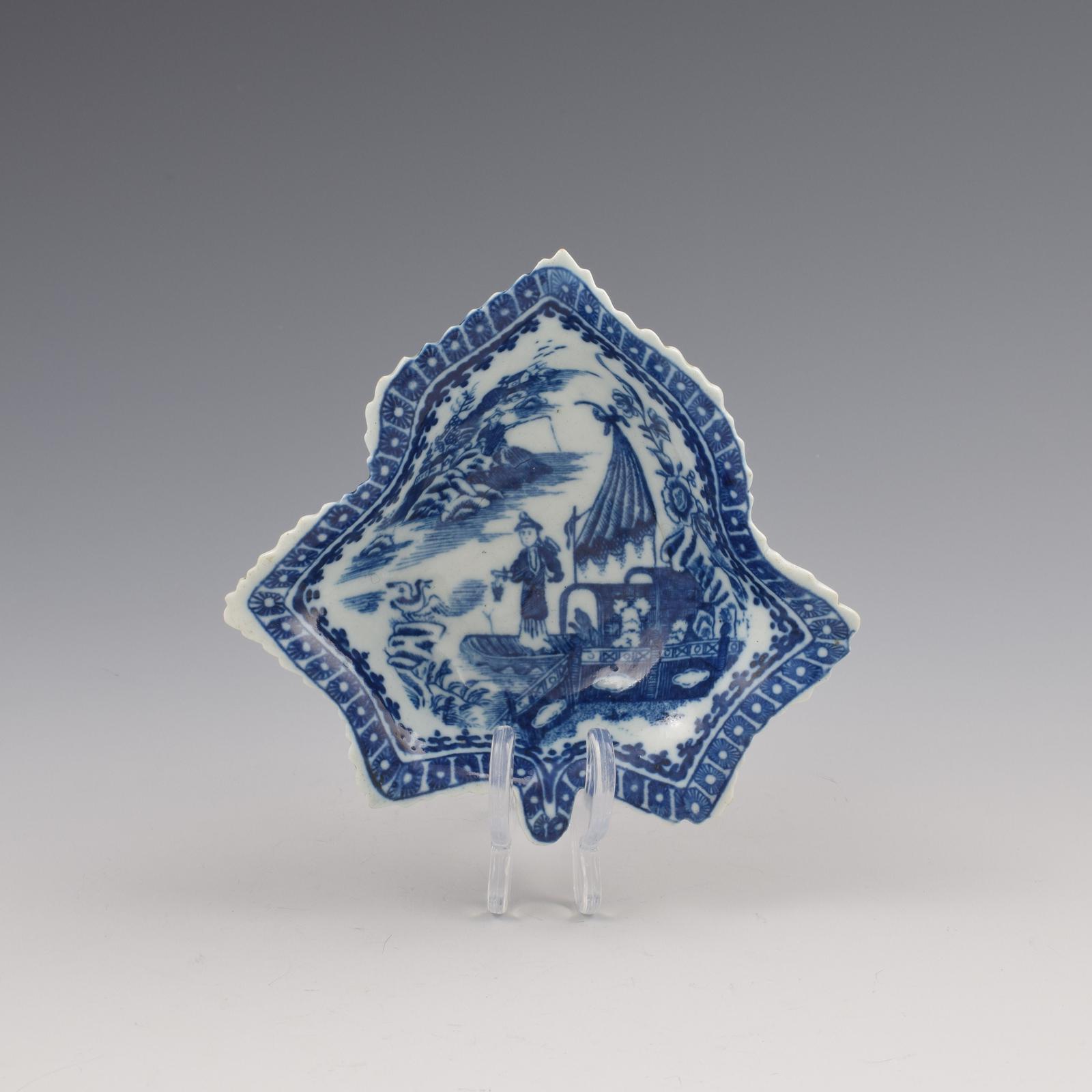 Caughley Porcelain Large Leaf Shaped Pickle Dish Fisherman Pattern c.1780