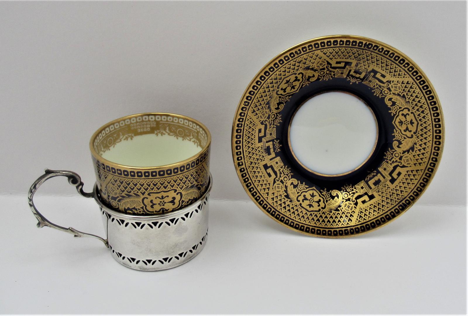 Cauldon Bone China Coffee Cup & Saucer, Silver Mount, Deakin & Francis, Birmingham 1933