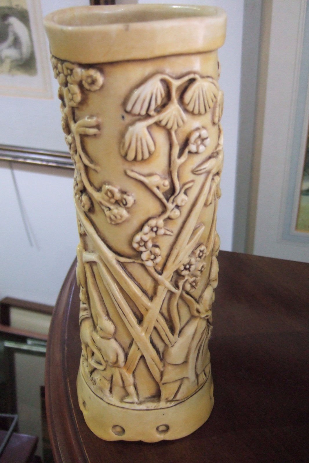 Ceramic Vase in Shape of Carved Ivory Tusk, by Ernst Bohne & Sohne (1 of 1)