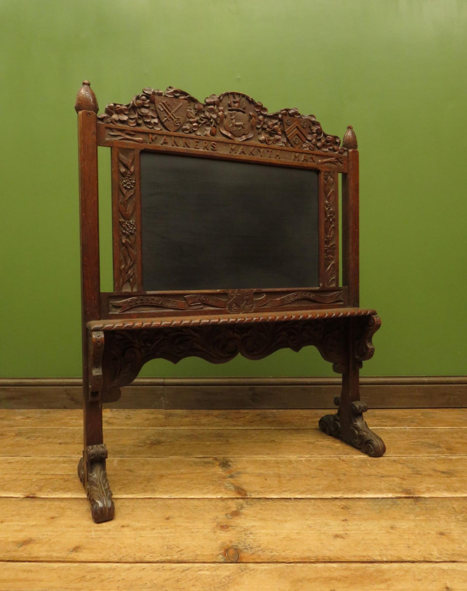Chalkboard With Antique Carved Oak Latin Inscribed Frame