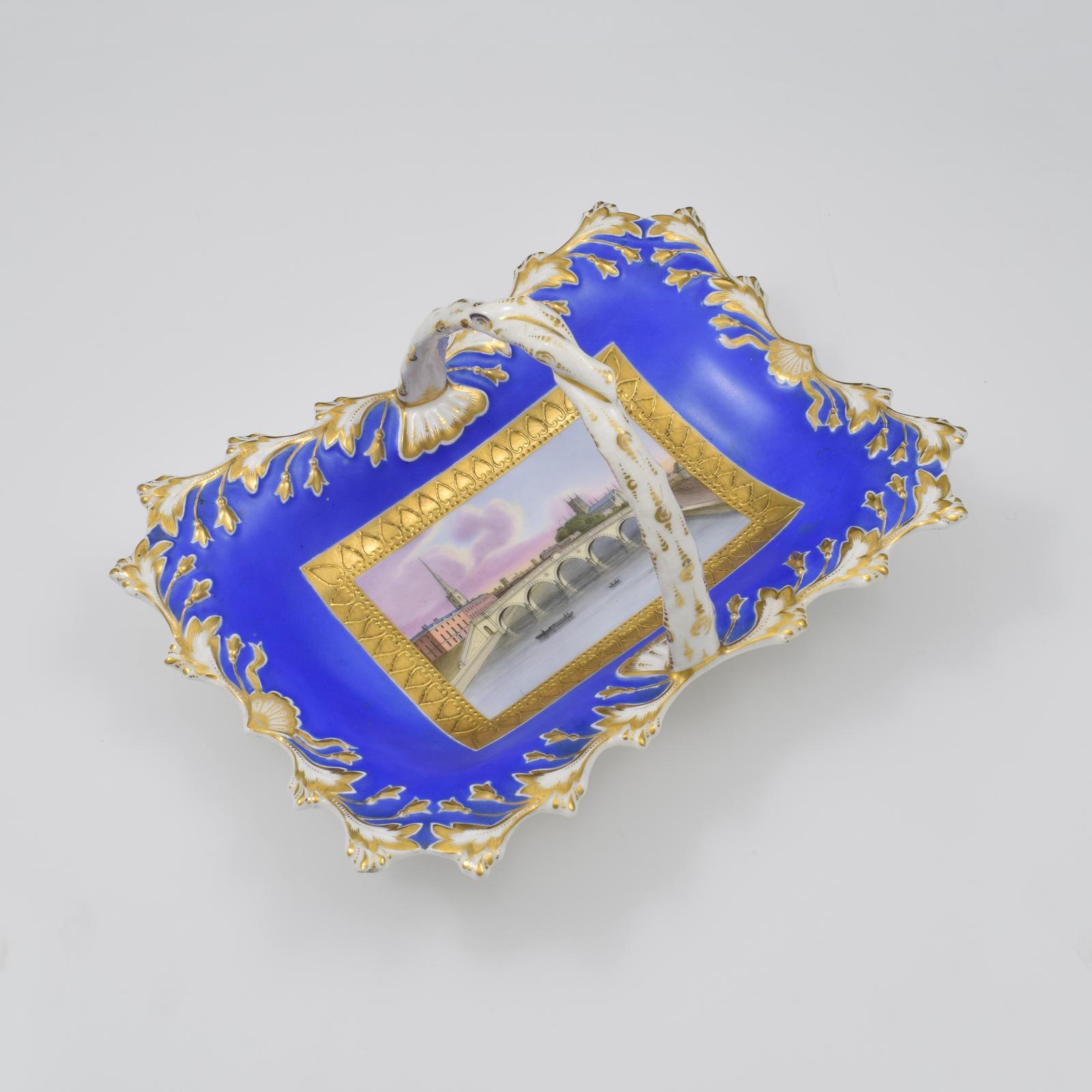 Chamberlain Worcester Porcelain Basket / Card Tray View of Worcester c.1840