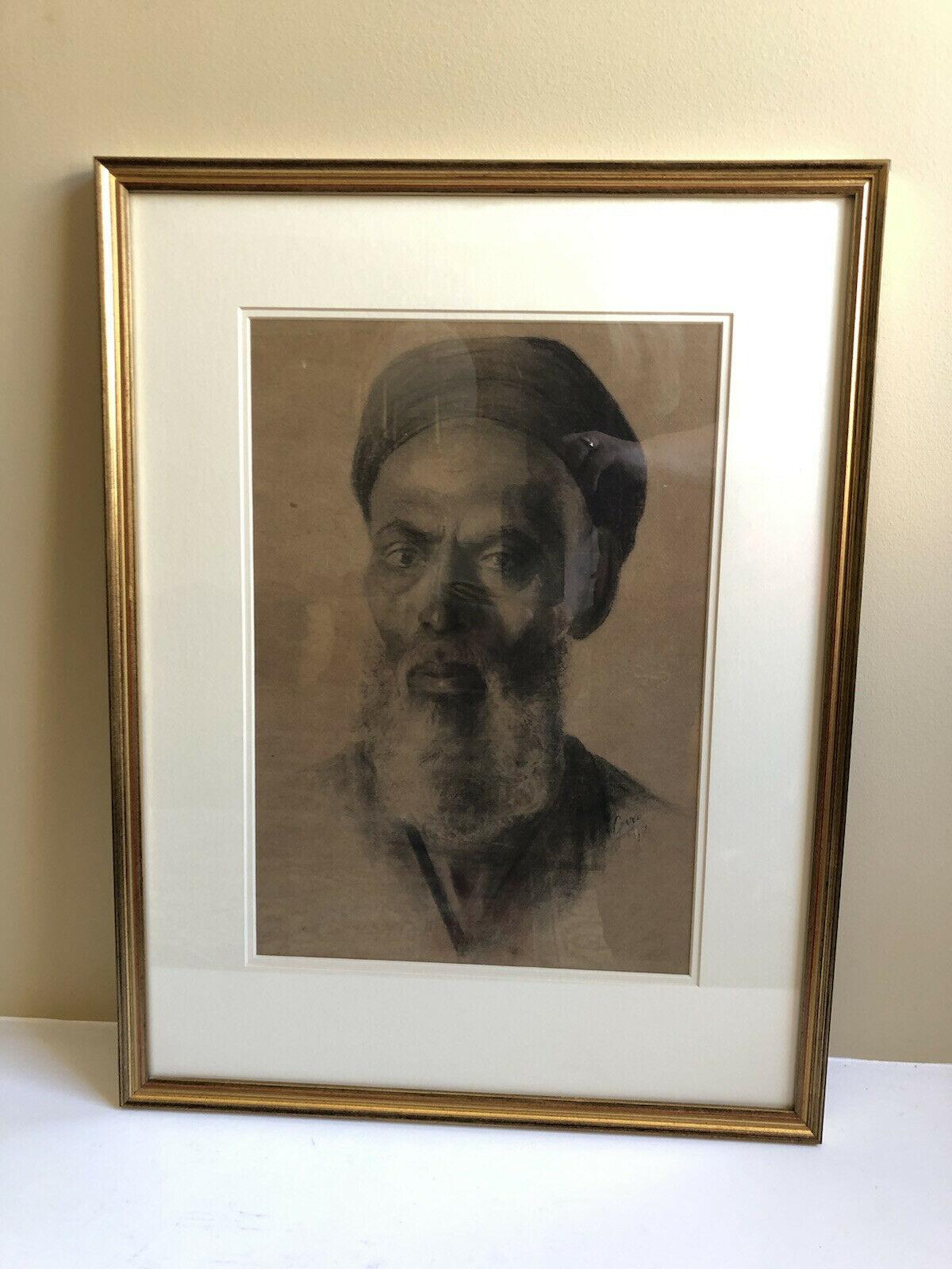 Charcoal Painting Of Man In Turban, Signed And Framed
