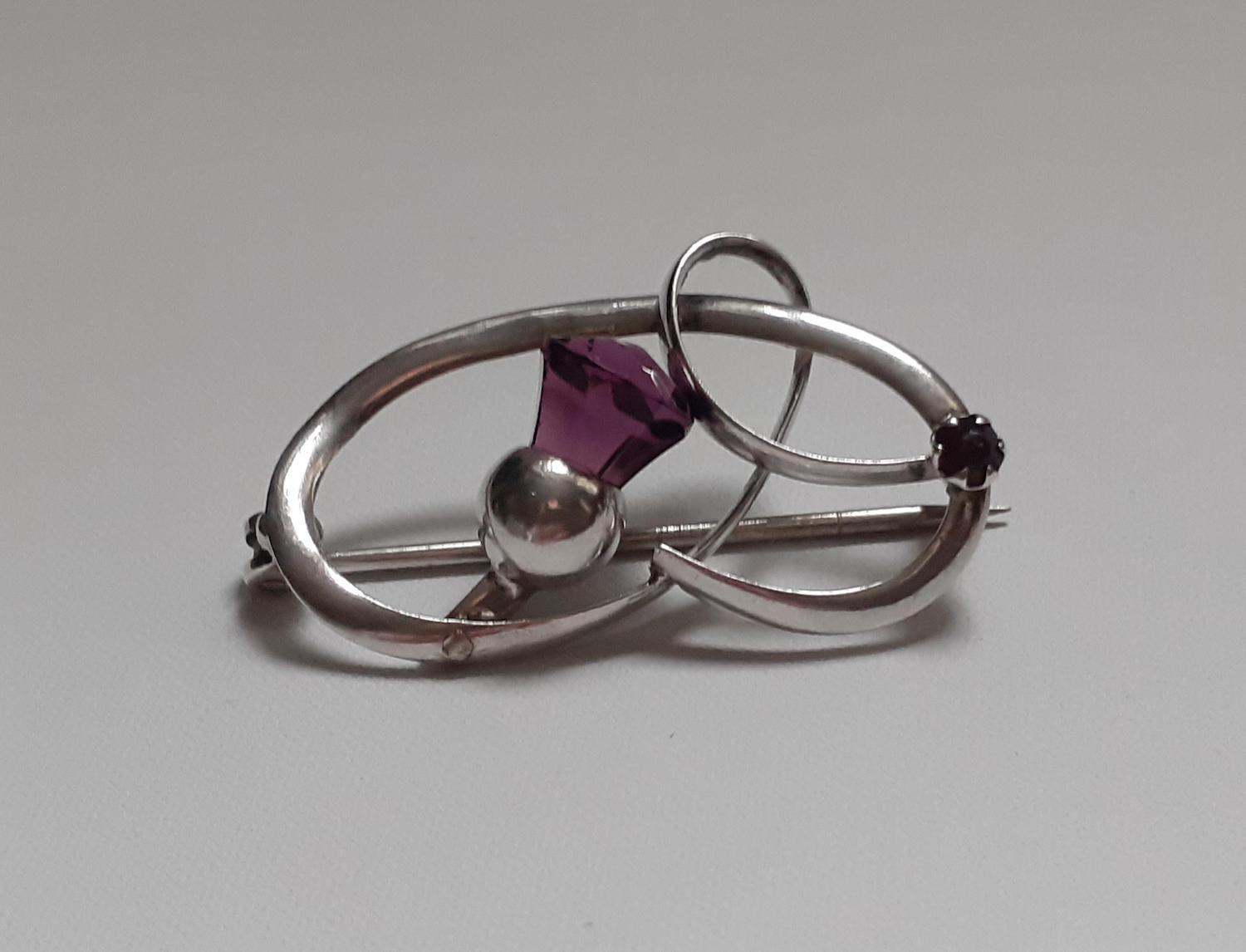 Charles Horner Silver & Amethyst Thistle Twist Brooch 1912