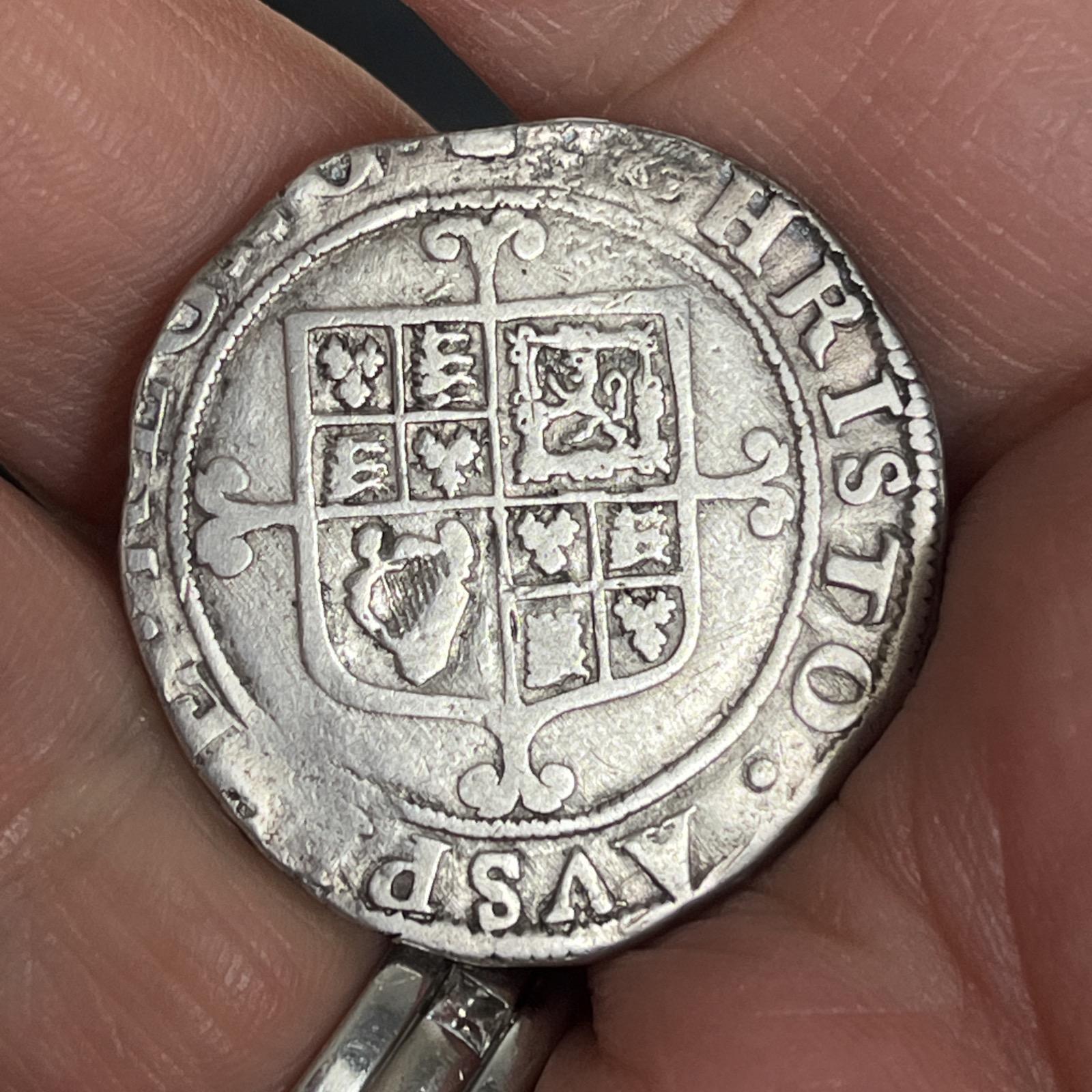 This example is clipped and has lost some legends - some pleasing detail remaining even though most of the kings effigy is lost.