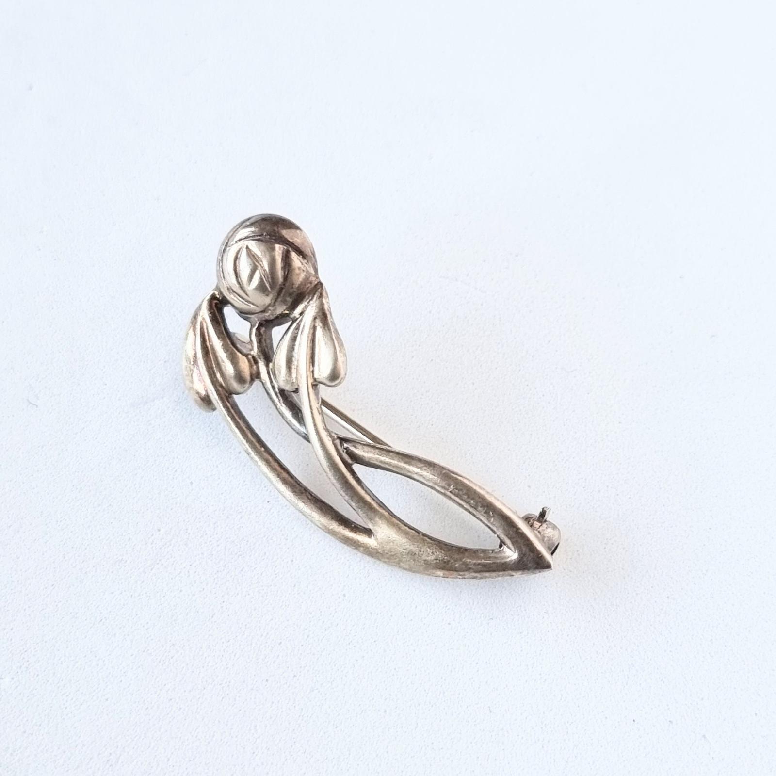 Charles Rennie Macintosh Design Sterling Silver Rose Brooch