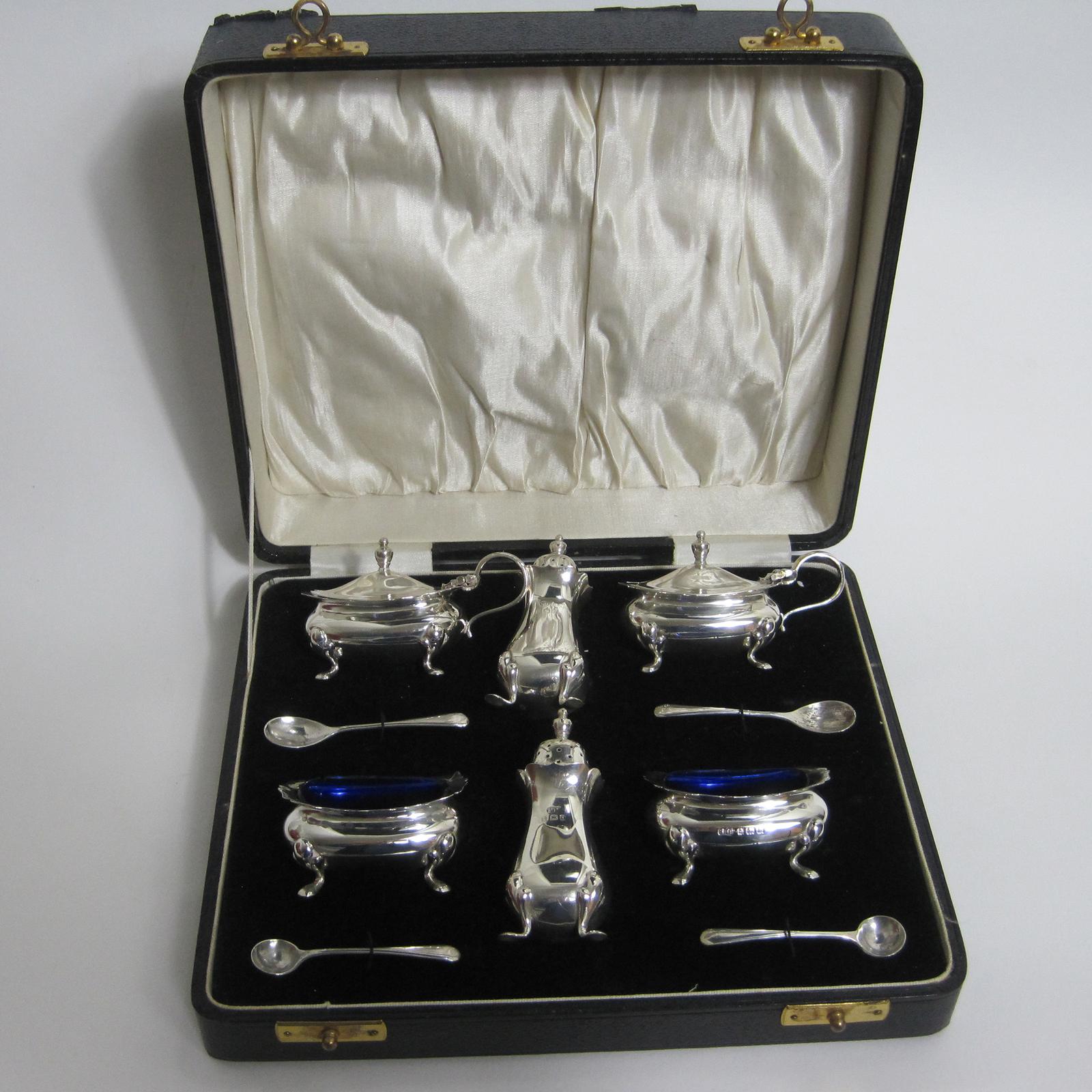Charming 10 Piece Silver Condiment Set in Fitted Black Velvet Lined Box (1 of 6)