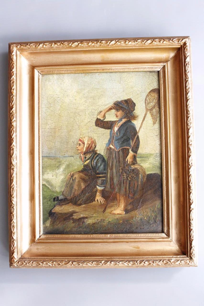 Charming 19th Century Oil On Canvas Children Looking Out To Sea (1 of 1)