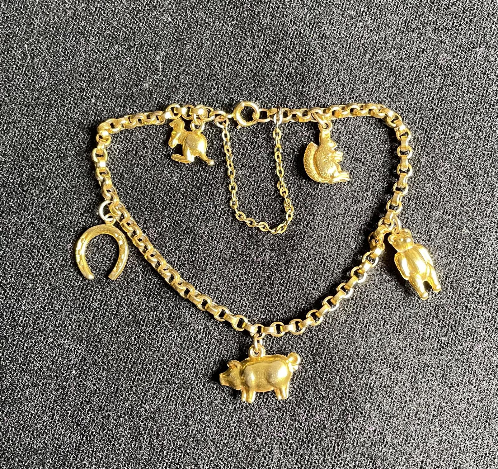 Charming 9ct Gold Charm Bracelet with 5 Charms