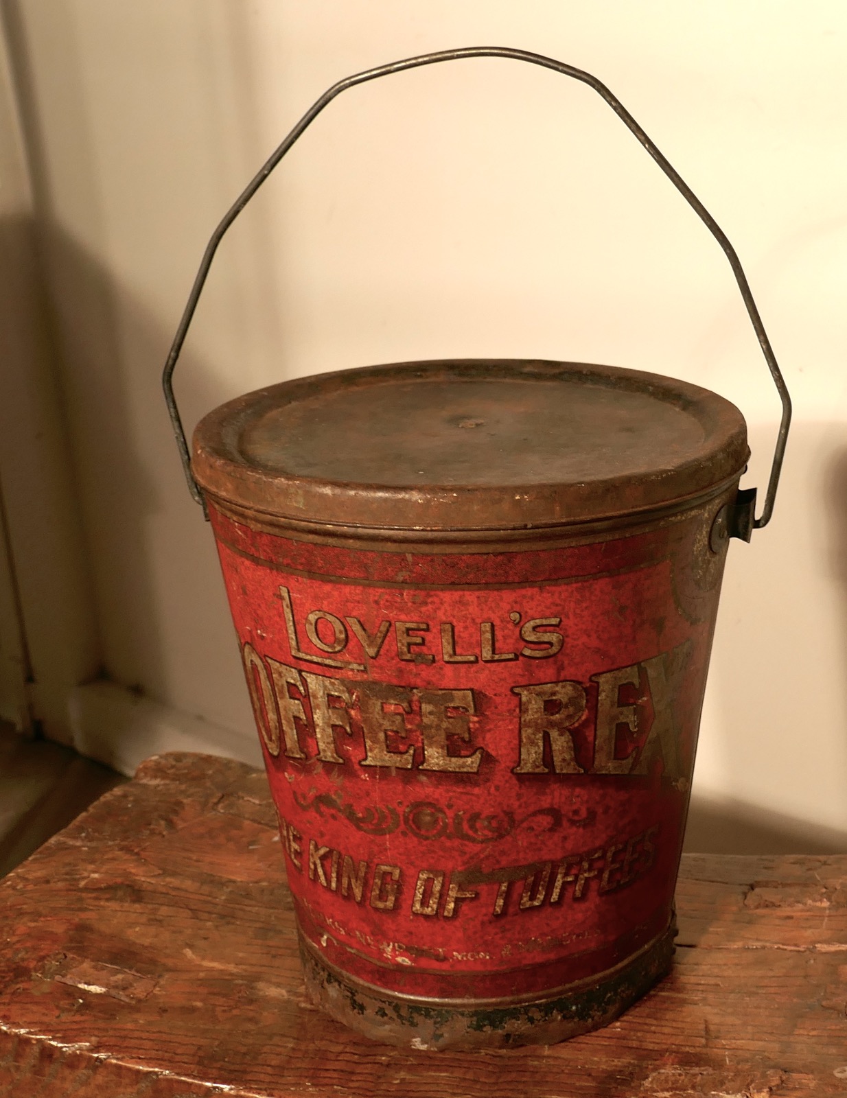 Charming Advertising Lovell’s Toffee Tin Bucket c.1920