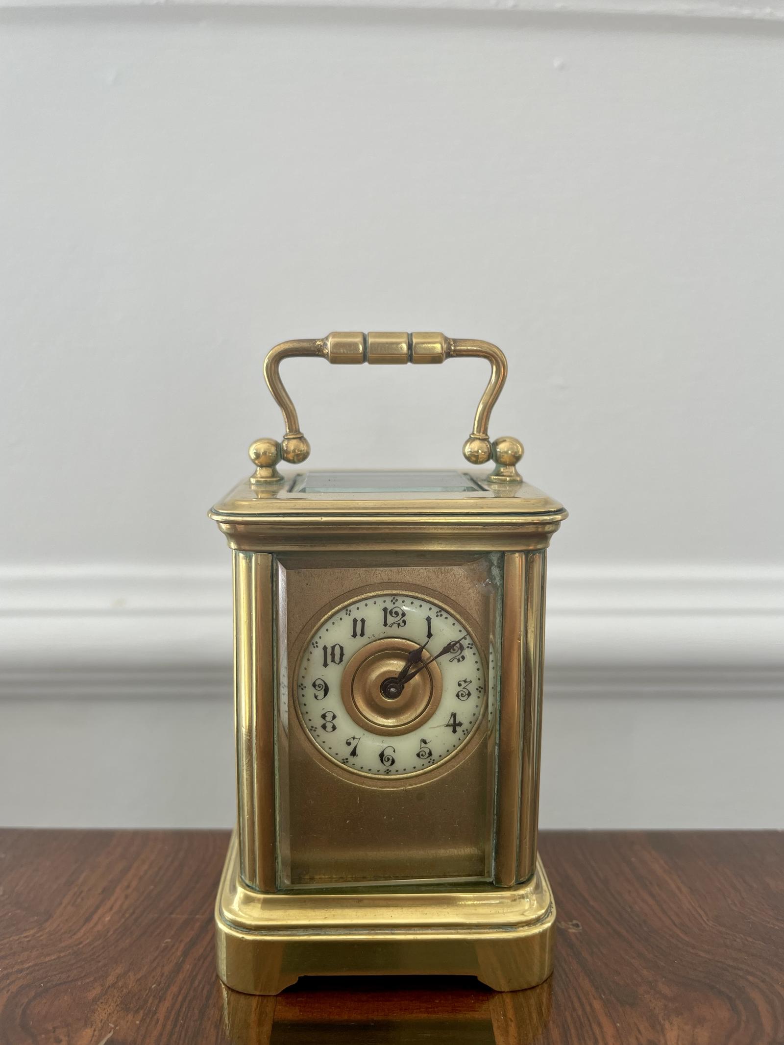 Charming Antique Lacquered Brass Cased Carriage Clock