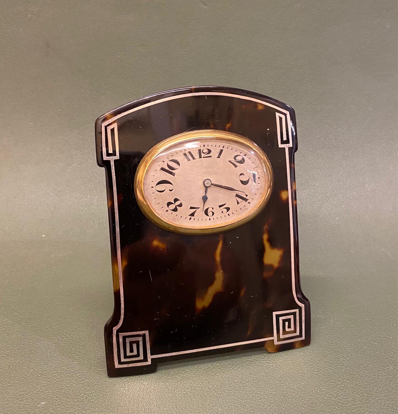 Charming Art Deco Period Tortoiseshell & Silver-mounted “Easel” or Bedroom Timepiece