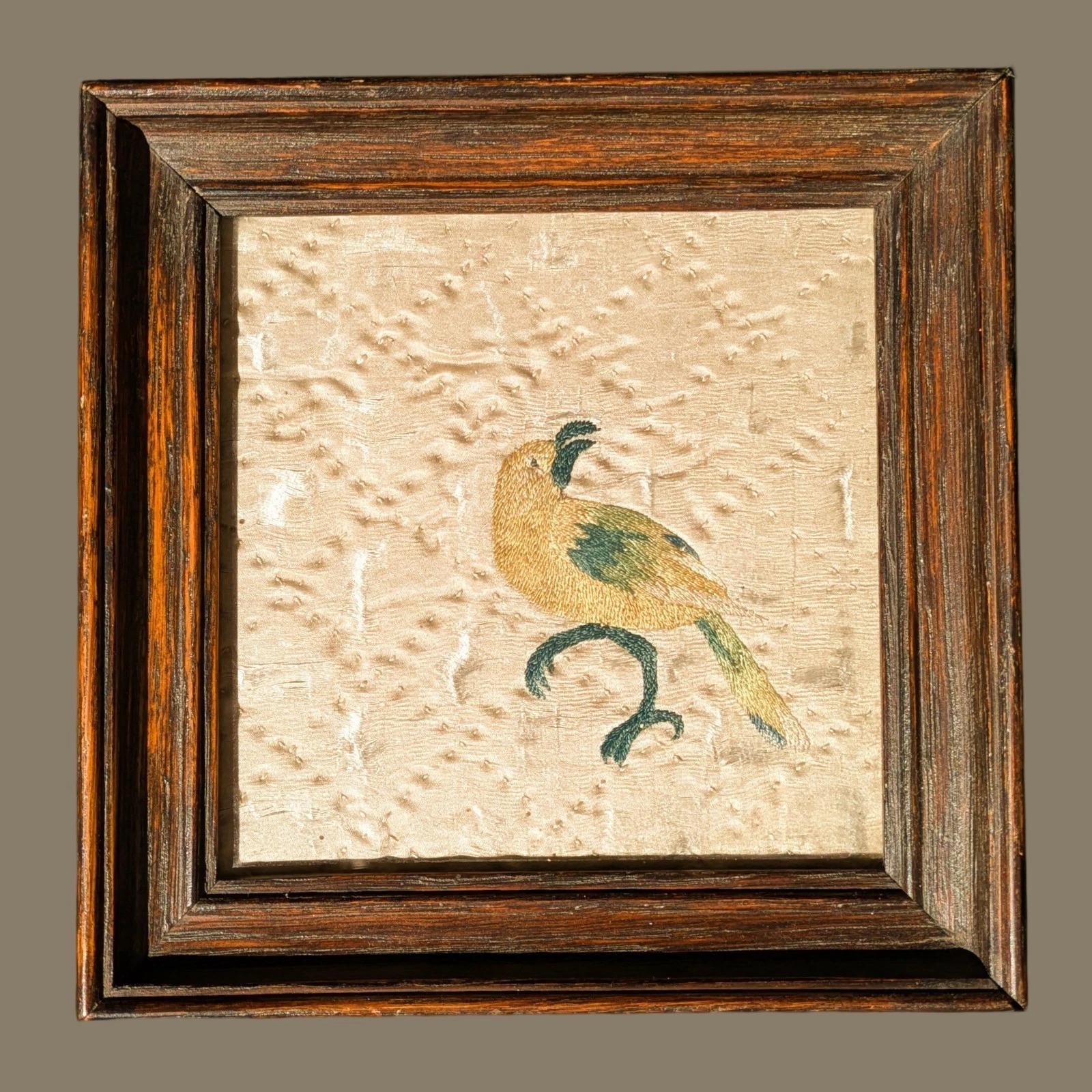 Charming Bird Embroidery 18th Century Framed