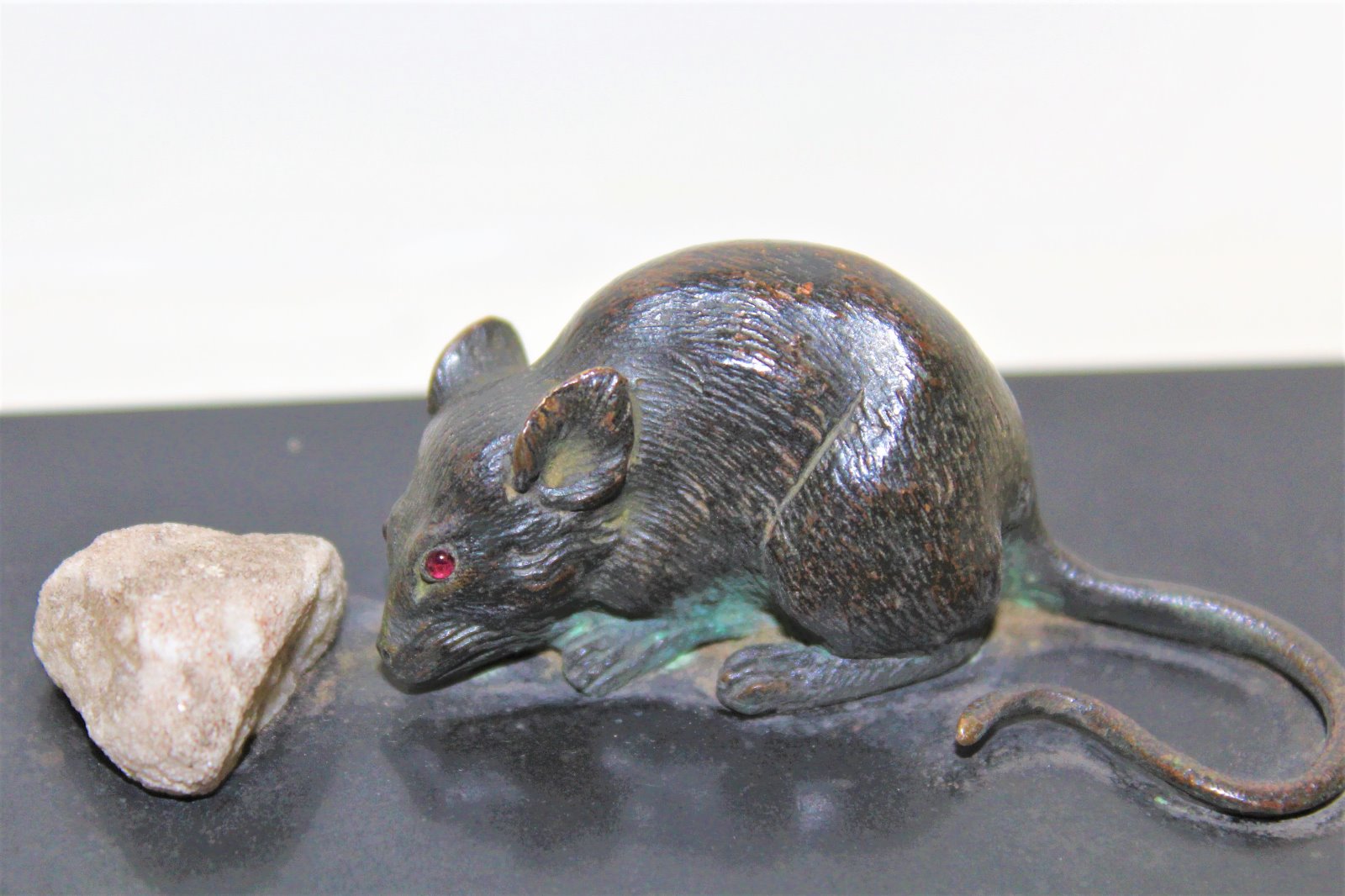 Charming Bronze Mouse Paperweight with Red Eyes on a Black Marble Socle English c.1880