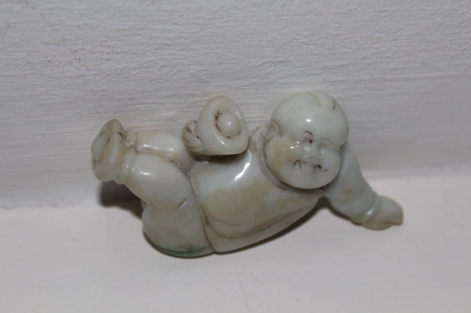 Charming Chinese Jade Carving of a Small Boy Holding a Birds Nest with An Egg