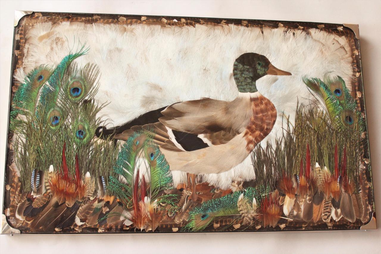Charming Early 20th Century Feather Picture Mallard Duck (1 of 1)