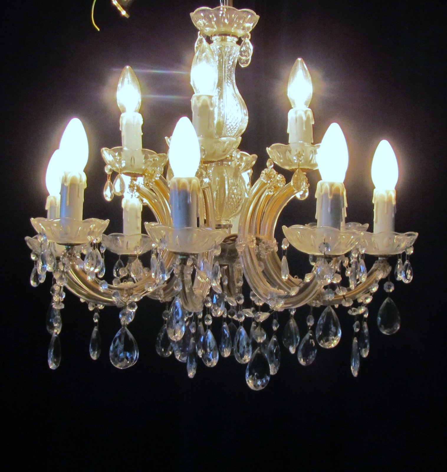 Charming French Cut Glass and Brass 12 Lamp Chandelier