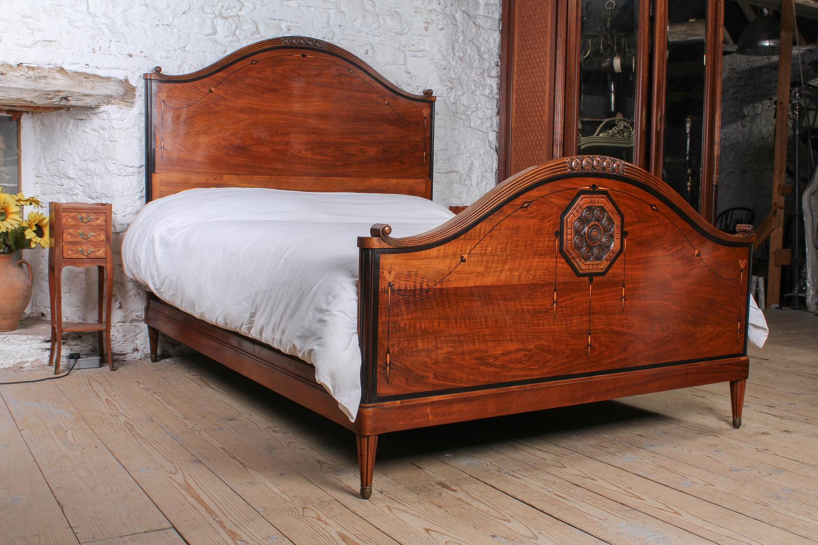 Charming Fruitwood Inlay Arts & Crafts King Size Bed (1 of 8)