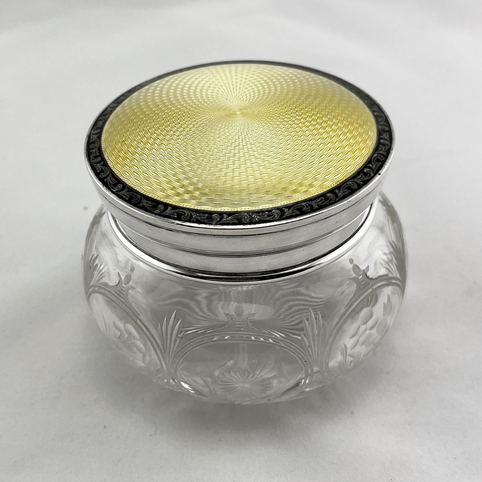 Charming Guilloche Enamel & Silver Dressing Table Jar
