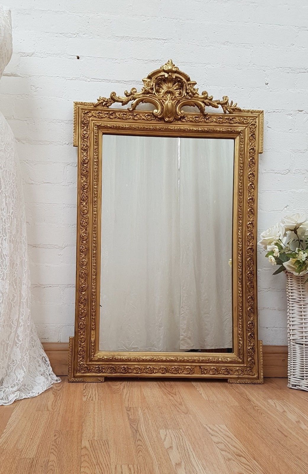Charming Large Antique French Crested Gilt Gesso Mirror c.1900