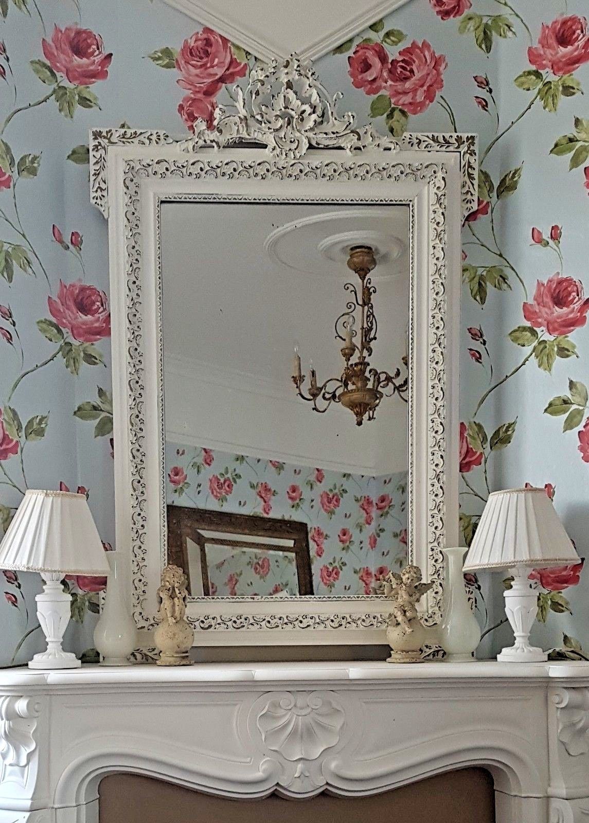 Charming Large Antique French Crested Gilt Painted Gesso Mirror C.1900