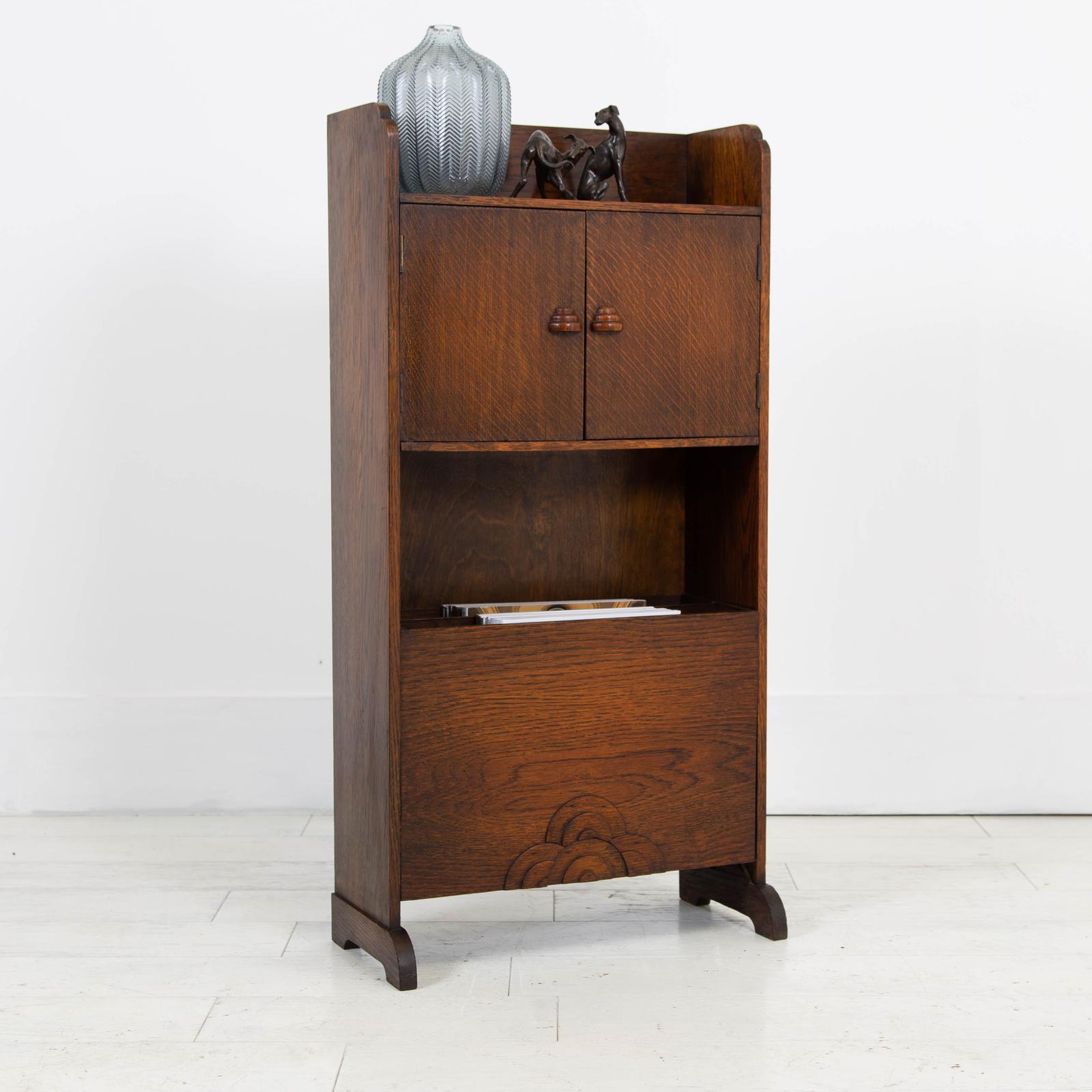 Charming Little Oak Art Deco Magazine Rack Cabinet