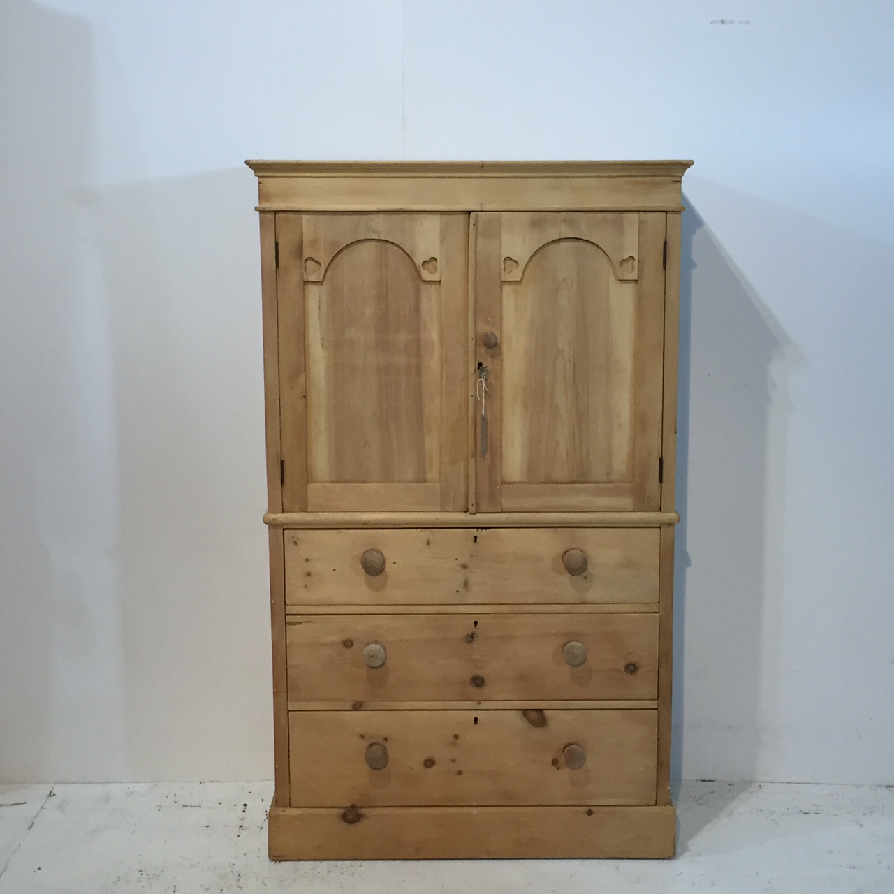 Charming Little Victorian Pine Linen Cupboard with Drawers (1 of 1)
