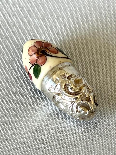 Charming Miniature Silver & Ceramic Bullet Scent Bottle