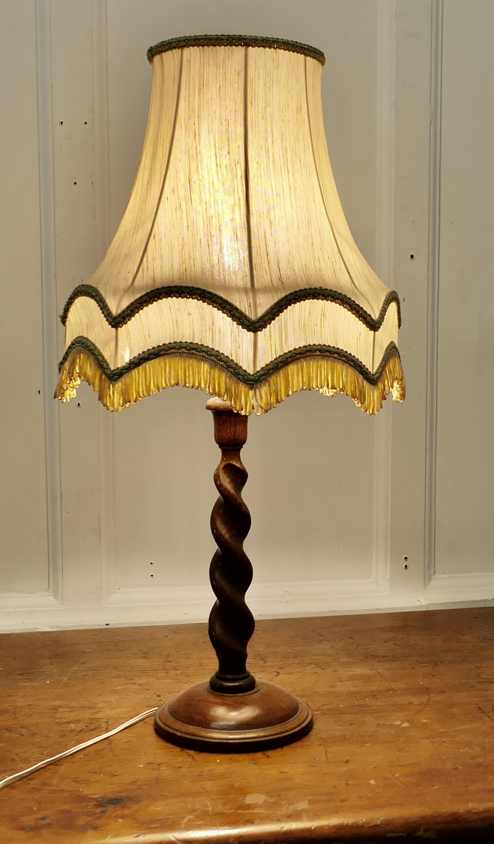 Charming Oak Turned Barley Twist Table Lamp