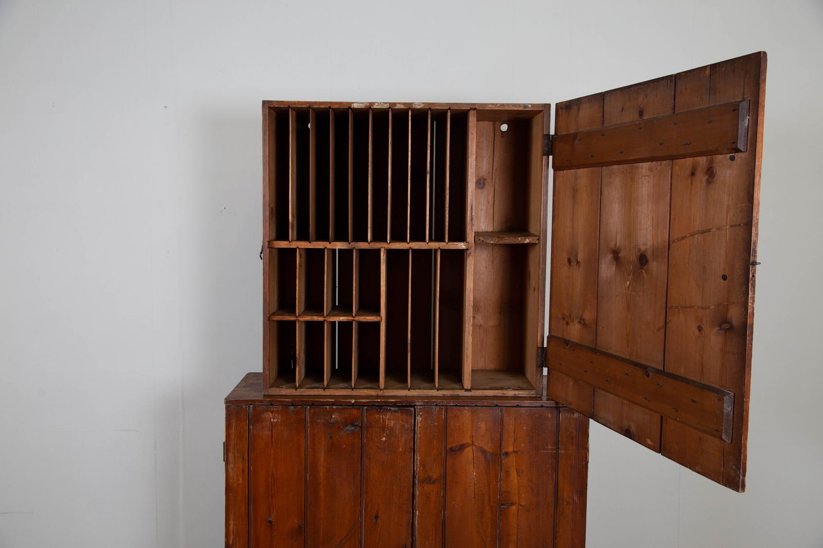 Charming Old Pine School Wall Cabinet with Pigeon Hole Storage