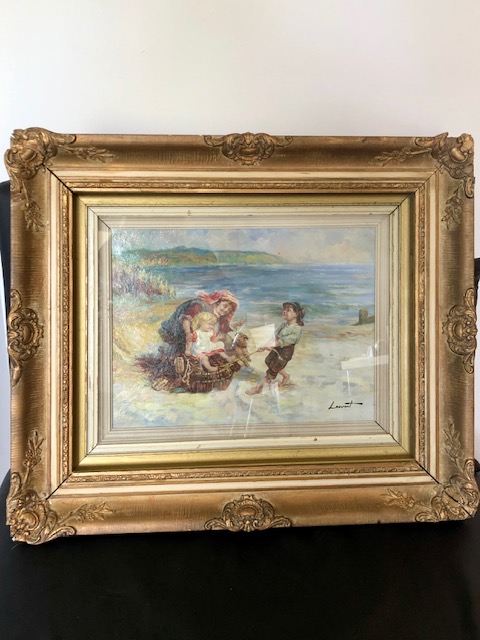 Charming Original Oil Painting of a Beach Scene, Signed Laurent