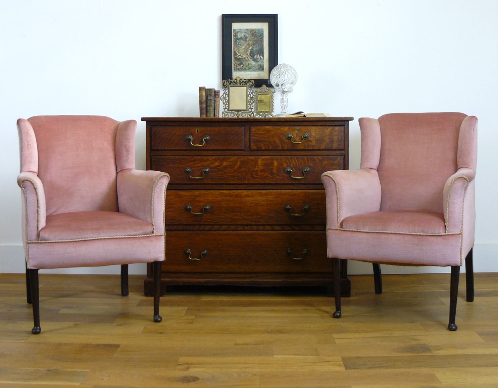 Charming Pair of Edwardian Antique Wingback Armchairs (1 of 1)