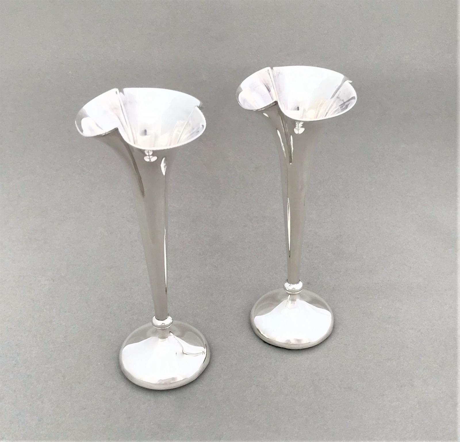 Charming pair of Edwardian silver stem vases