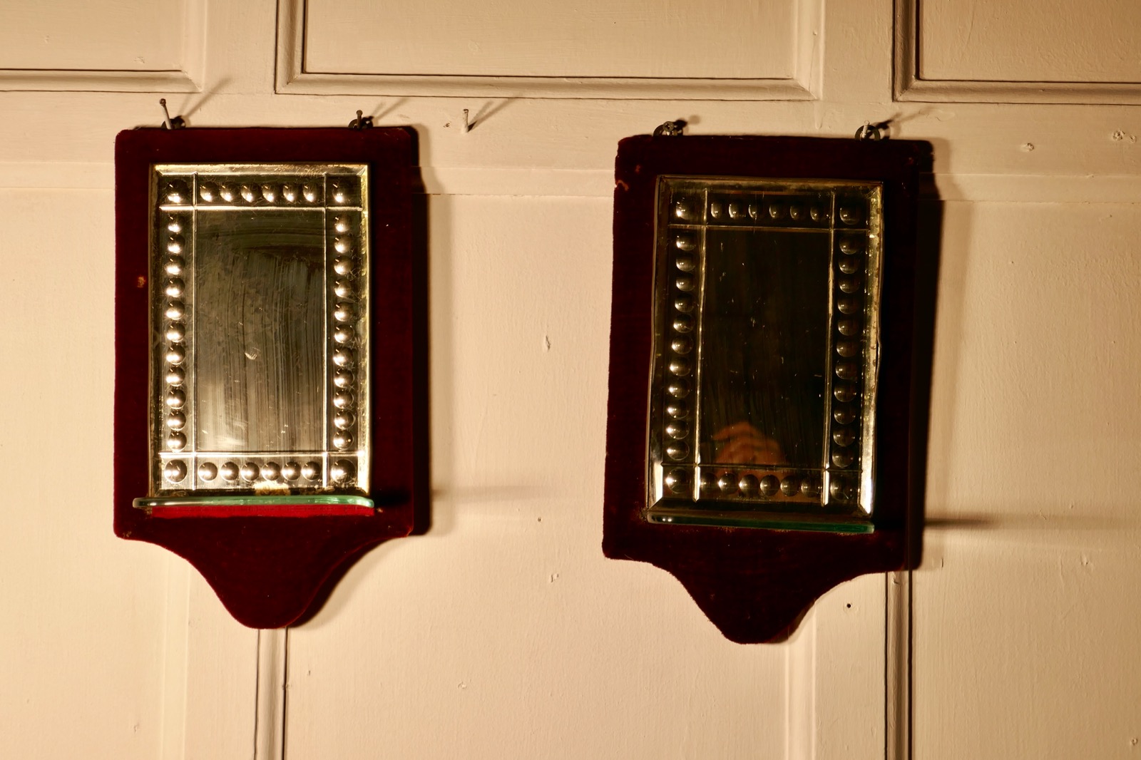 Charming Pair of French Red Velvet Boudoir Shelved Wall Mirrors