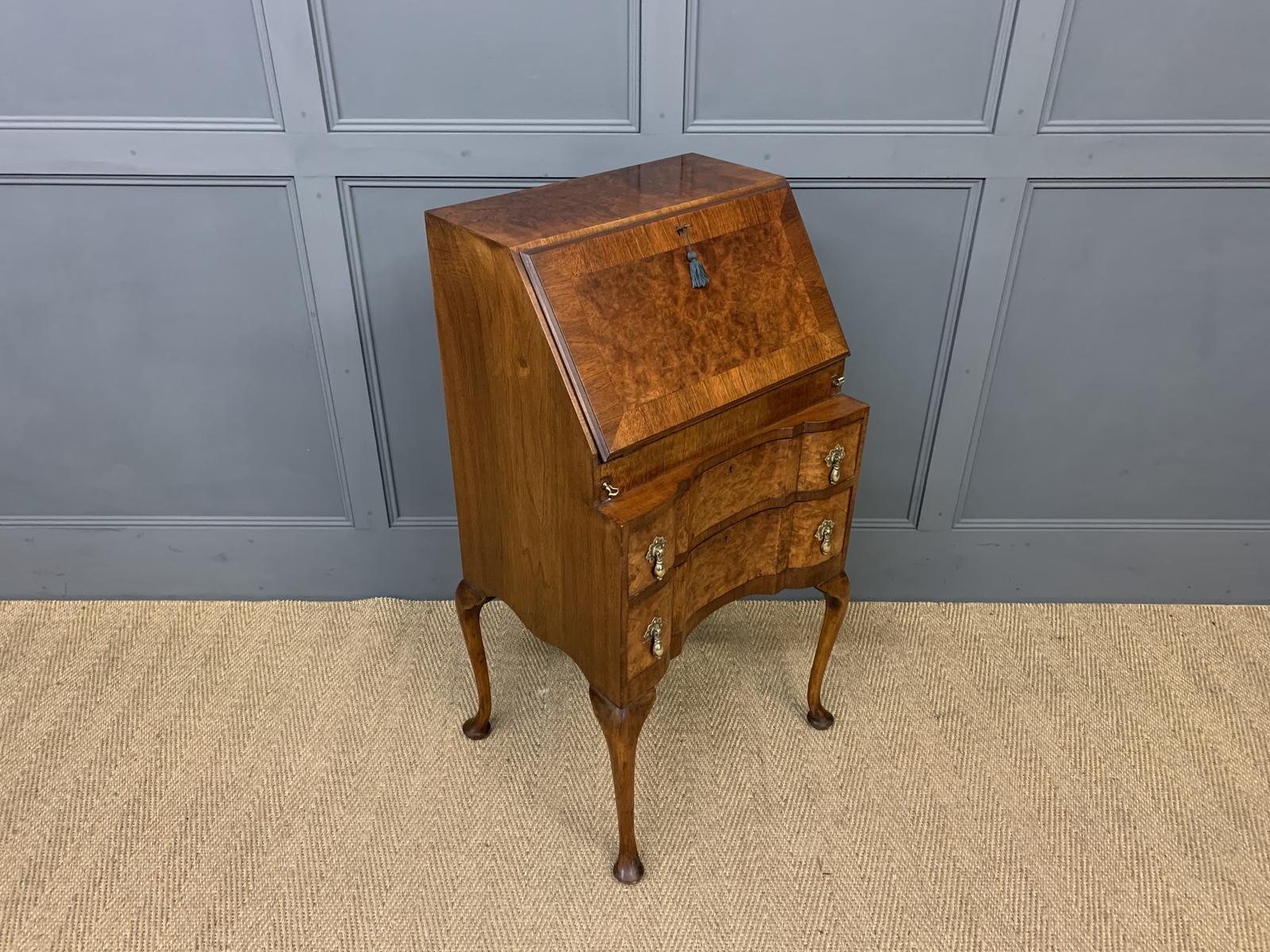 Charming Queen Anne Style Burr Walnut Bureau (1 of 12)