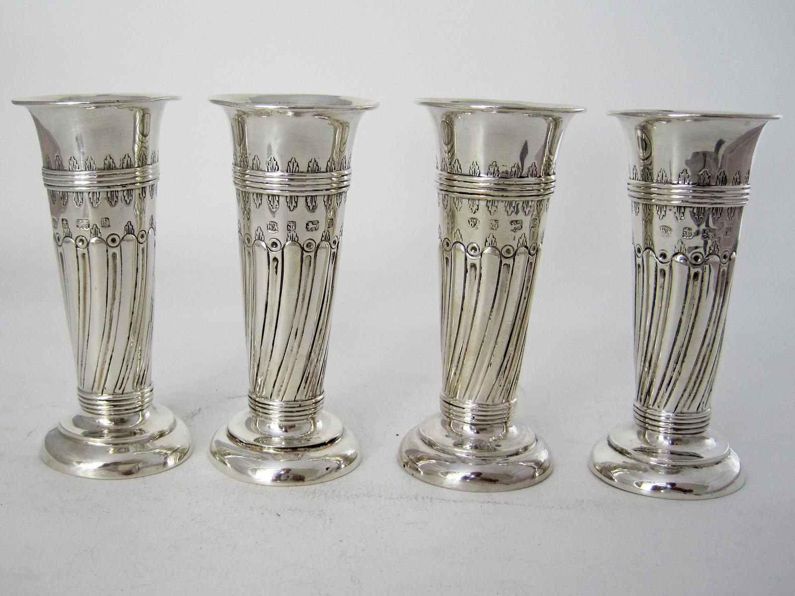 Charming Set of Four Good Quality Edwardian Silver Flower Vases (1 of 4)