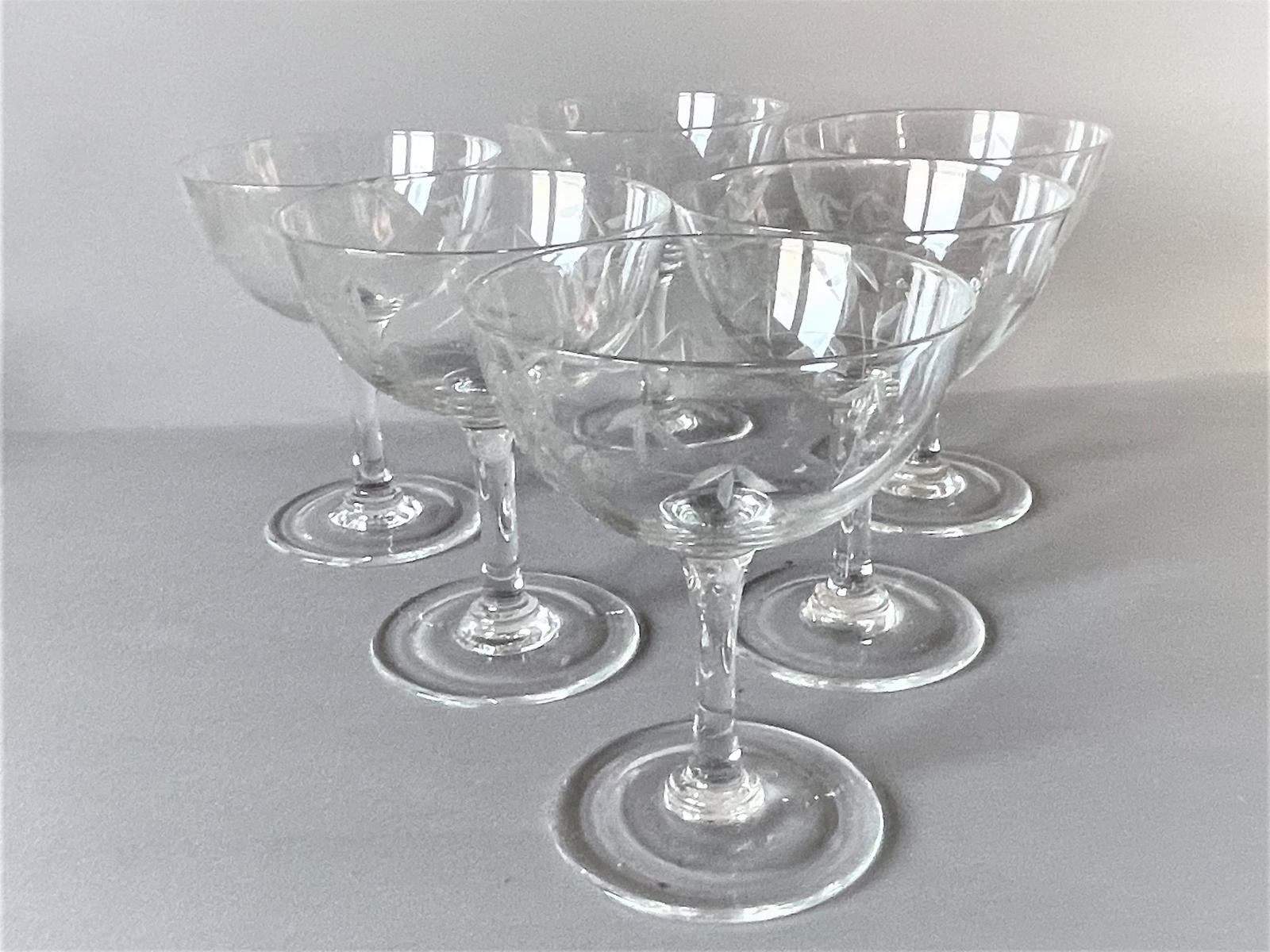Charming Set of Six Etched Champagne Glasses in the Aesthetic Taste (1 of 5)