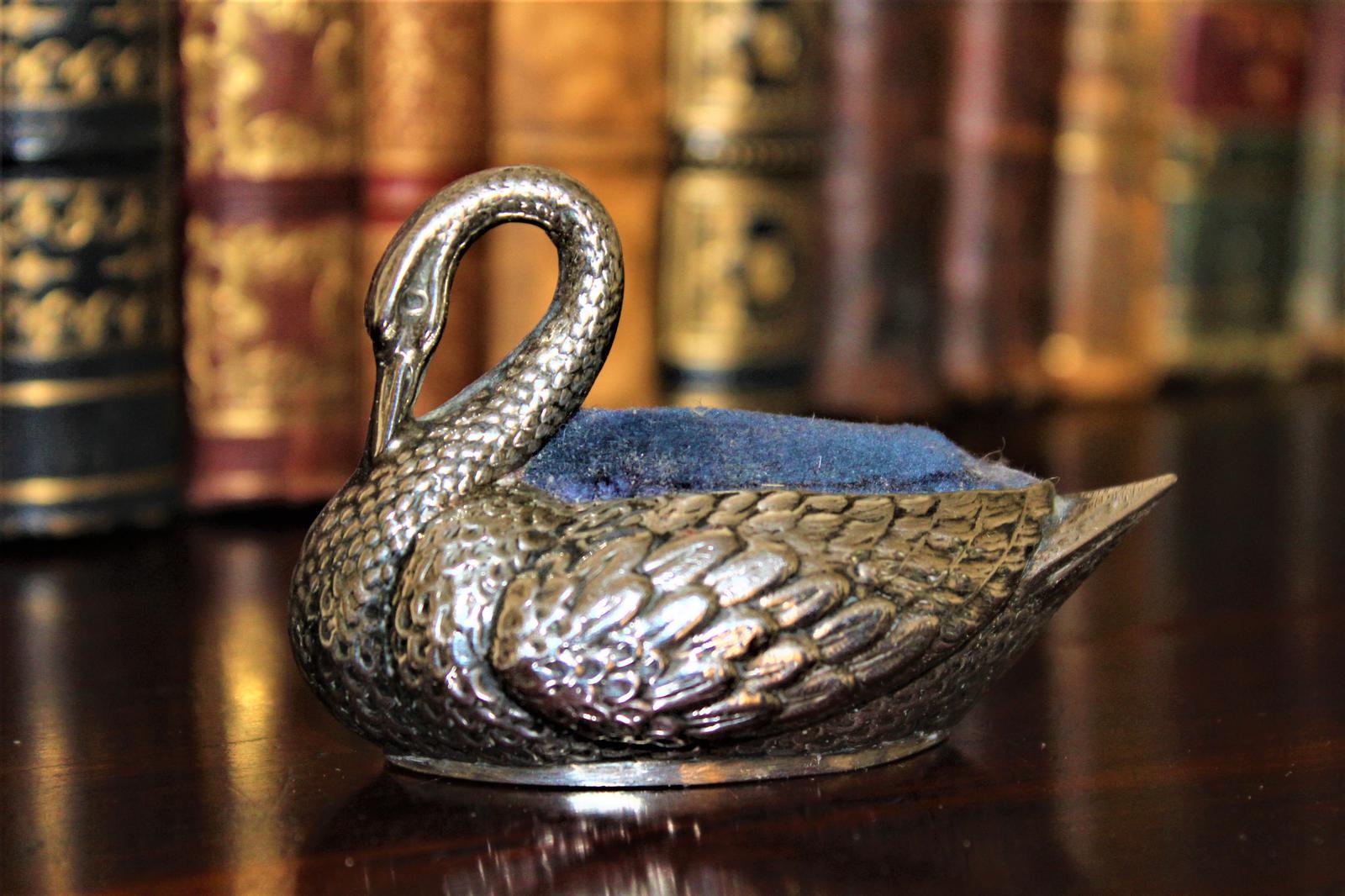 Charming Silver Swan Pin Cushion c.1910