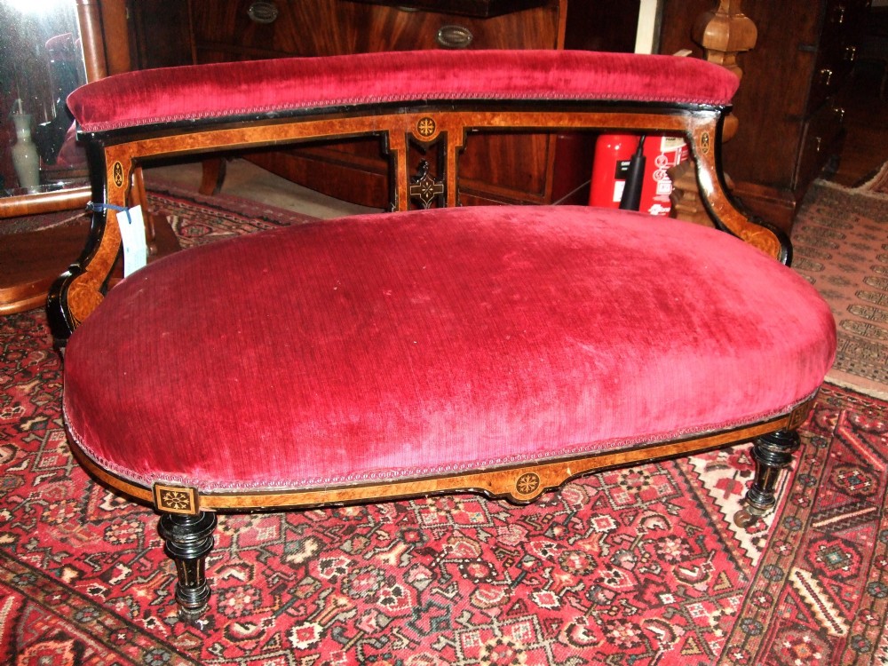 Charming Victorian Amboyna & Ebonised Settee