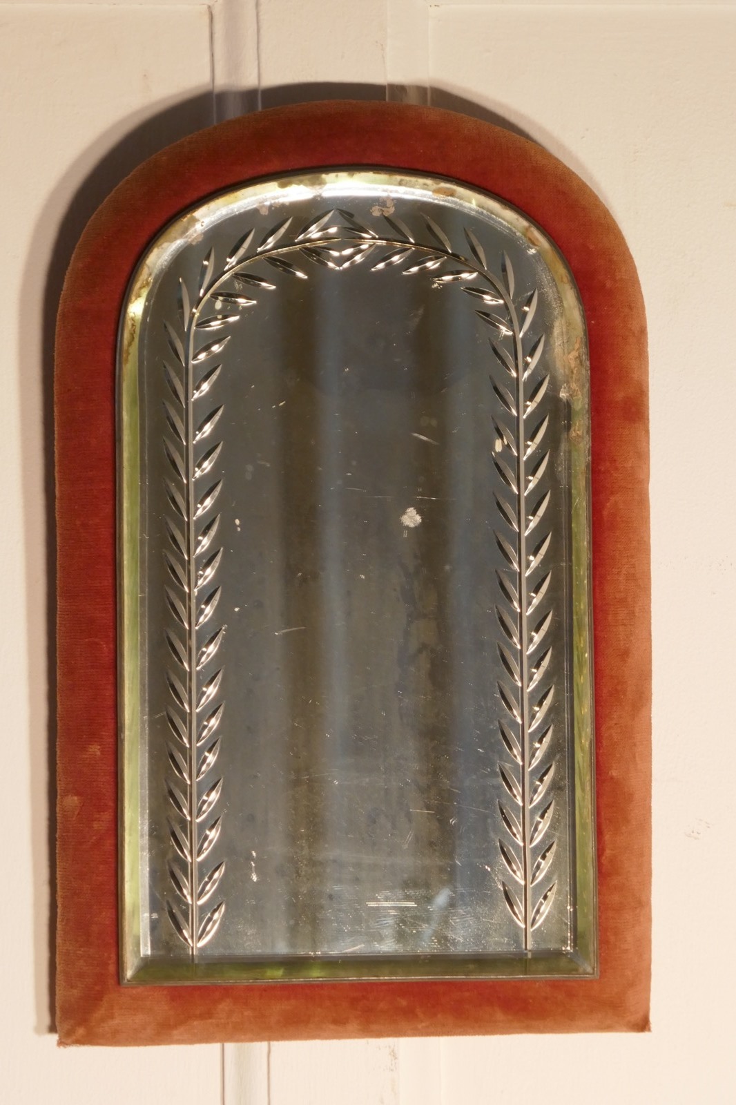 Charming, Victorian Pink Velvet Boudoir Wall Mirror