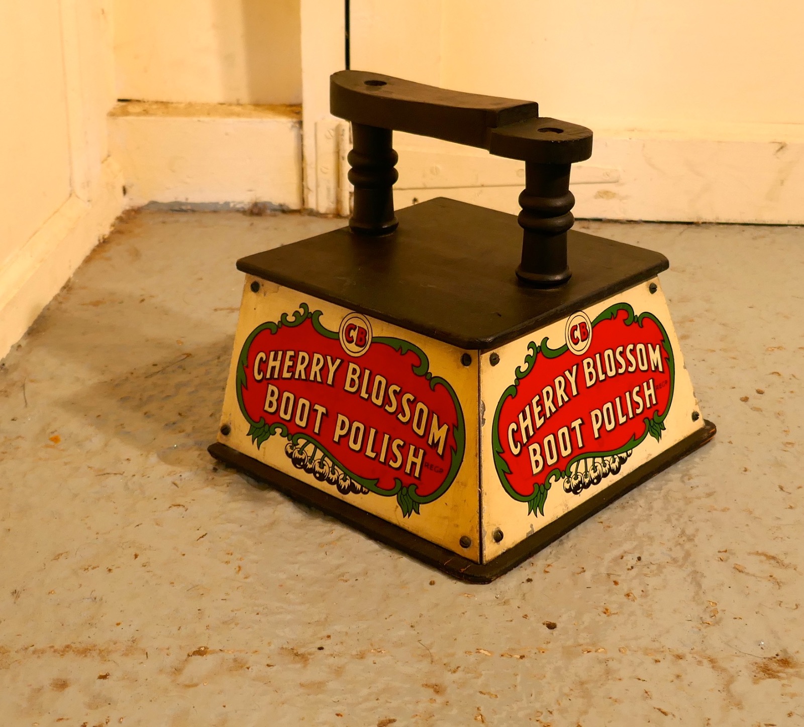 Cherry Blossom Boot Polish Advertising Shoe Cleaning Box & Shoe Rest