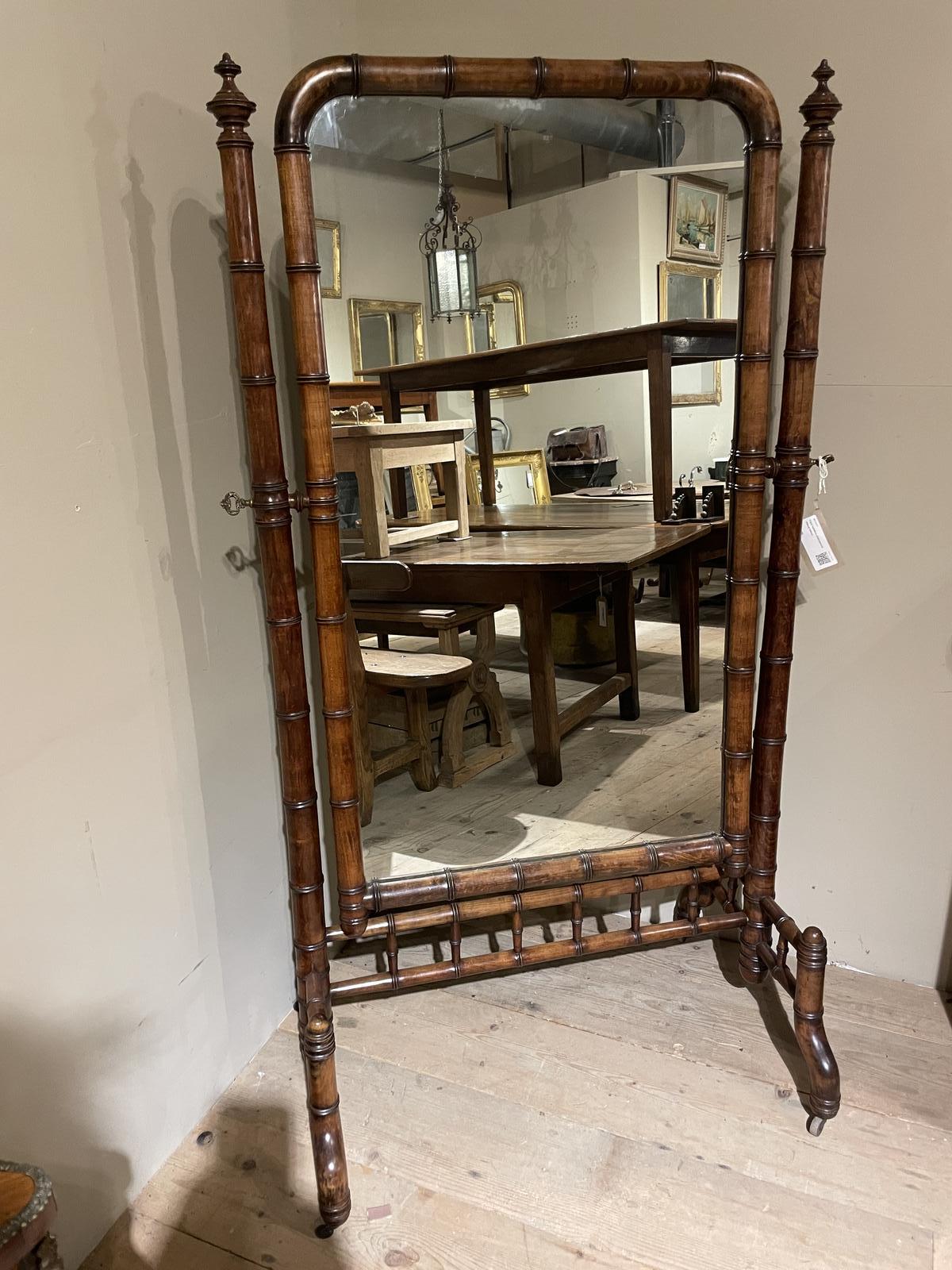 Cherrywood Faux Bamboo Cheval Mirror