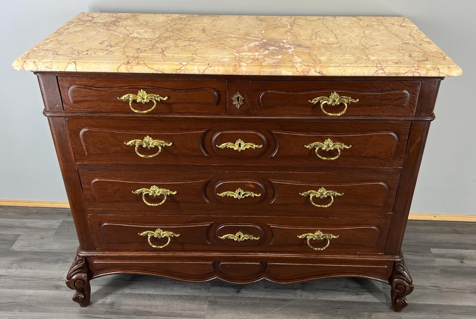Chest of Drawer Oak French Marble-top Sideboard Cabinet, Cupboard (1 of 15)