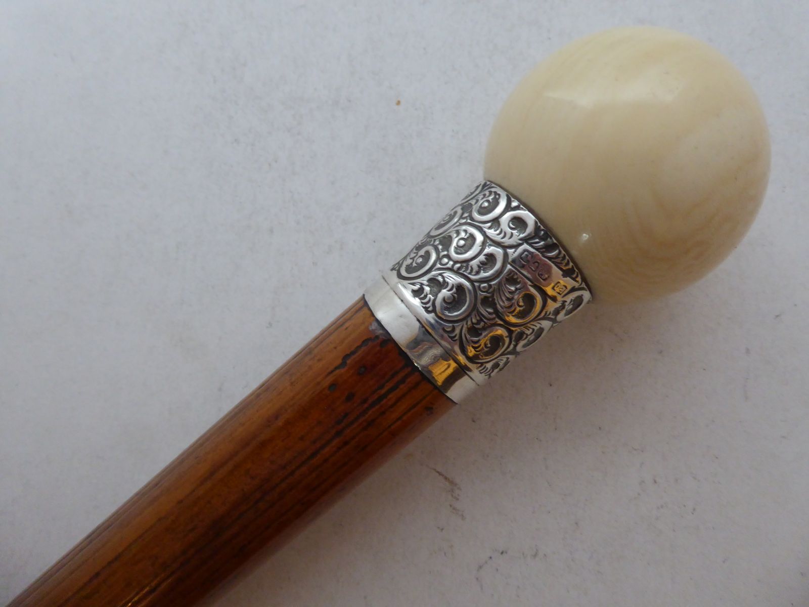 Chester 1900 Walking Stick Cane Solid Silver Collar Malacca Shaft Tagua Nut